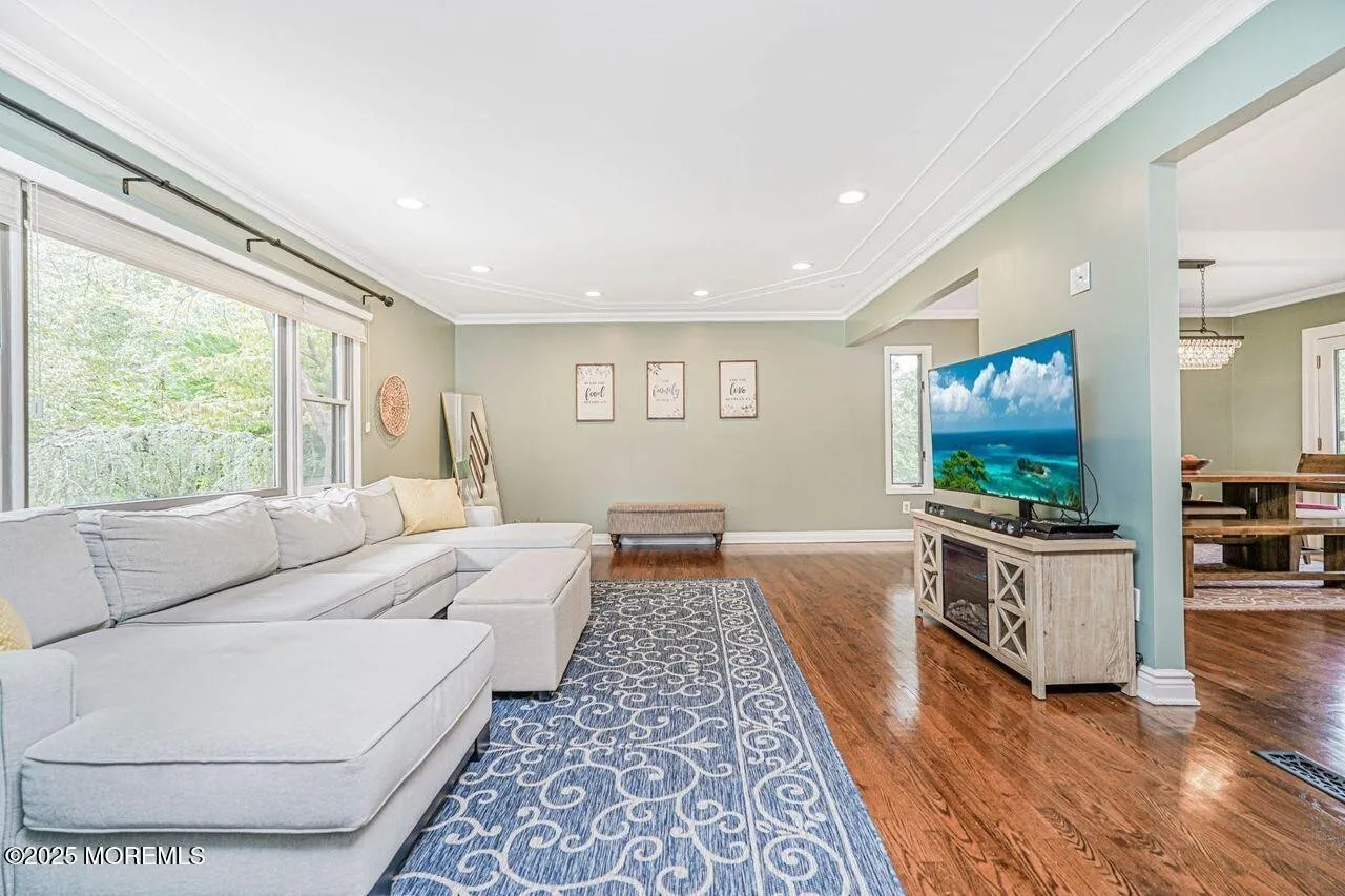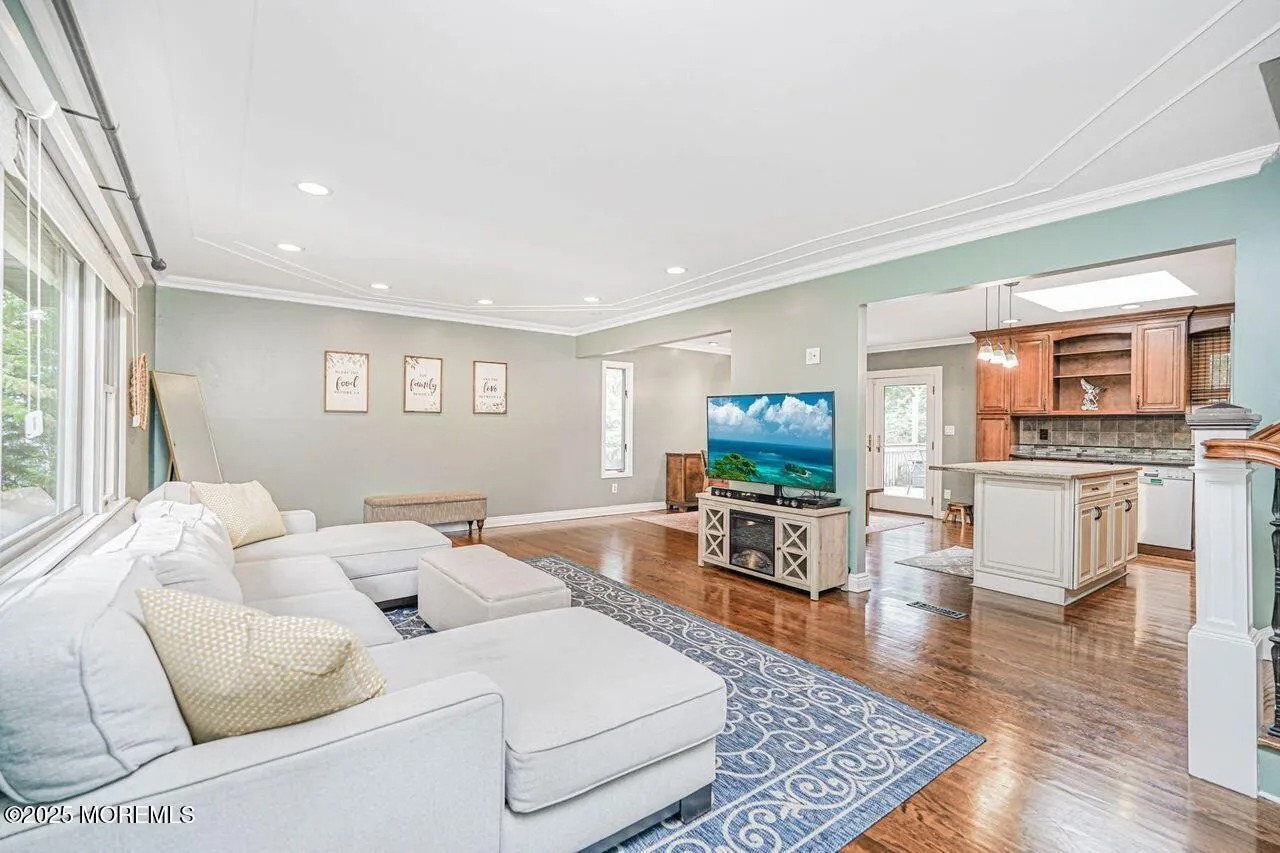 THIS 4 BDRM 2.5 BTH, 2 CAR GARAGE IS TRULY A UNIQUE SPLIT LEVEL HOME IN THE HEART OF DESIRABLE MANALAPAN! SITUATED ON A BEAUTIFUL BLOCK AND SET ON A LARGE LOT, THIS HOME OFFERS STYLE, SPACE & COMFORT! THE HGHLIGHT OF THIS HOME IS AN EXPANSIVE GREAT ROOM ADDITION ON THE FIRST LEVEL, LIKE NO OTHER(18X25), BOASTING 10 FT CEILINGS, NEW SKYLIGHTS, WALLS OF WINDOWS & 2 SIDE DOORS LEADING OUTSIDE, FILLING THIS SPACE WITH NATURAL LIGHT. A GAS FIREPLACE ADDS WARMTH & CHARM MAKING IT THE PERFECT GATHERING SPOT! A BONUS GUEST ROOM, HALF BATH & LAUNDRY ROOM ALSO ON LVL 1. ON LVL 2 YOU WILL FIND AN OPEN CONCEPT LAYOUT FEATURING A SPACIOUS LIV RM WITH HDWD FLRS, DECORATIVE CEILING, CROWN MOLDING, BAY WINDOW & RECESSED LIGHTING. THE NEWER KITCHEN HAS A GRANITE ISLAND, SS APP,NEW STOVE & MICRO, DIN RM HAS SLIDERS TO A DECK OVERLOOKING LARGE YARD & LANDSCAPE. UPSTAIRS YOU WILL FIND 4 NICE SIZE BDRMS & 2 ADD BATHS. THE PRIMARY BDRMS HAS 2 CLOSETS & AN ENSUITE BATH. THE HOME HAS 2 ZONE HEATING & AIR, APPROX 2017 FOR MAIN HOUSE(ADDITION ON SEPERATE), ROOF APROX 2019. GREAT LOCATION CLOSE TO ALL!!