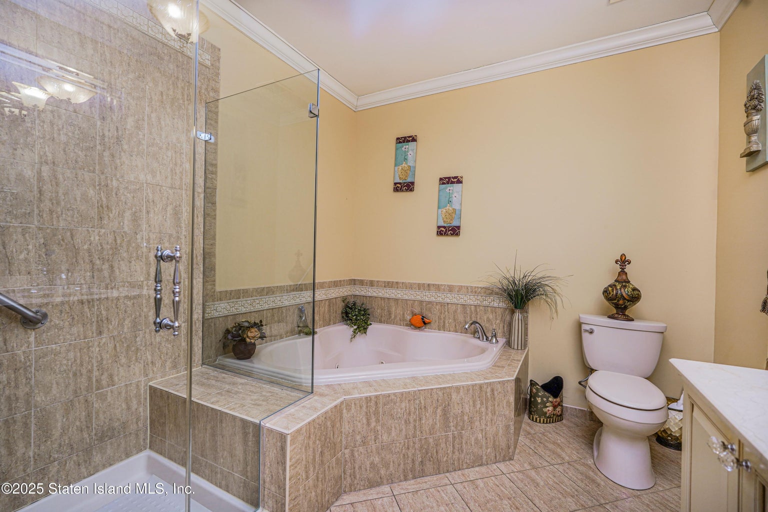 WELCOME TO THE TIDES! THE ONLY 55+ GATED WATERFRONT COMMUNITY IN STATEN ISLAND! LUXURY AT ITS BEST! EXTRA LARGE & GORGEOUS 2 BEDROOM 3 BATH HOME WITH A FULL WALKOUT BASEMENT! BEAUTIFUL KIT WITH ISLAND, GRANTE COUNTERTOPS , CROWN MOLDING, WHICH FLOWS INTO DIN RM. STUNNING 2 STORY LIV RM LOOKING UP TO LOFT, HARDWOOD FLOORS, A WALL OF WINDOWS & SLIDER TO SMALL BALCONY. NICE 1/2 BATH, LAUNDRY RM. MASTER BEDROOM SUITE HAS WIC, PRIVATE 4 PC BATH WITH JACUZZI TUB & STAND UP SHOWER. 2ND LEVEL FEATURES AN OPEN LOFT/FAM RM OVERLOOKING 2 STORY LIV RM, OFFICE AREA & 2ND BEDROOM WHICH HAS A WIC & CROWN MOLDING, FULL BATH. FULL PARTIALY FIN WALK OUT BASEMENT WITH HIGH CEILINGS & SLIDERS TO A PATIO. ENJOY AMMENTITES THE COMMUNITY HAS TO OFFER! TENNIS, BOCCI, CLUBHOUSE, FULLY EQUIPPED GYM, POOL, PATH ALONGSIDE WATERFRONT TO SEE BEAUTIFUL SUNSETS, ACTIVITIES, SECURITY. FURNITURE IS NEGOTIABLE.